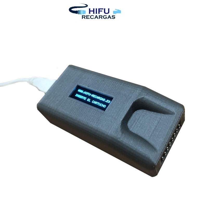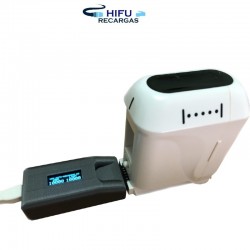 Gerät, das die Anzahl der verwendeten Schüsse anzeigt, wenn eine Patrone angeschlossen wird, die den VirtualCounter® von HIFU-RECARGAS®